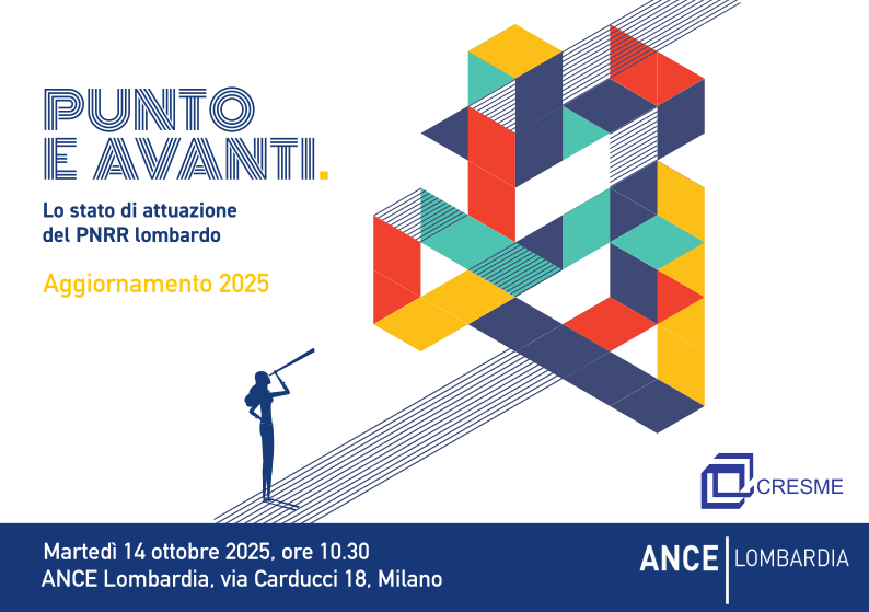 È programmato per il prossimo 14 ottobre alle ore 10.30 l’evento organizzato da ANCE Lombardia in collaborazione con Cresme dal titolo “Punto e avanti. Lo stato di attuazione del PNRR lombardo | Aggiornamento 2025”.