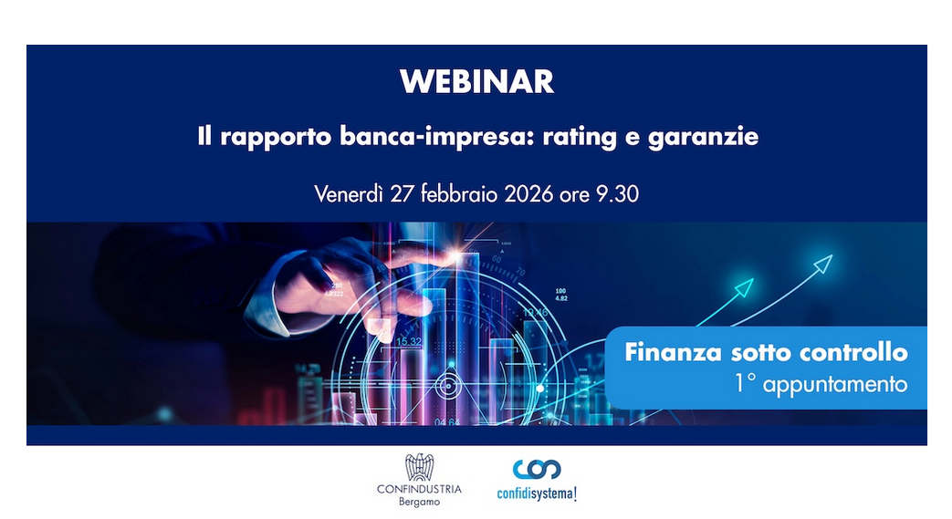 Le imprese associate ad ANCE Bergamo sono invitate a partecipare al ciclo di webinar “Finanza sotto controllo”, un percorso di approfondimento dedicato ai principali temi della finanza d’impresa, organizzato dall'area Credito e Finanza di Confindustria Bergamo, con l’obiettivo di fornire strumenti pratici, chiavi di lettura aggiornate e spunti operativi per supportare le decisioni aziendali.