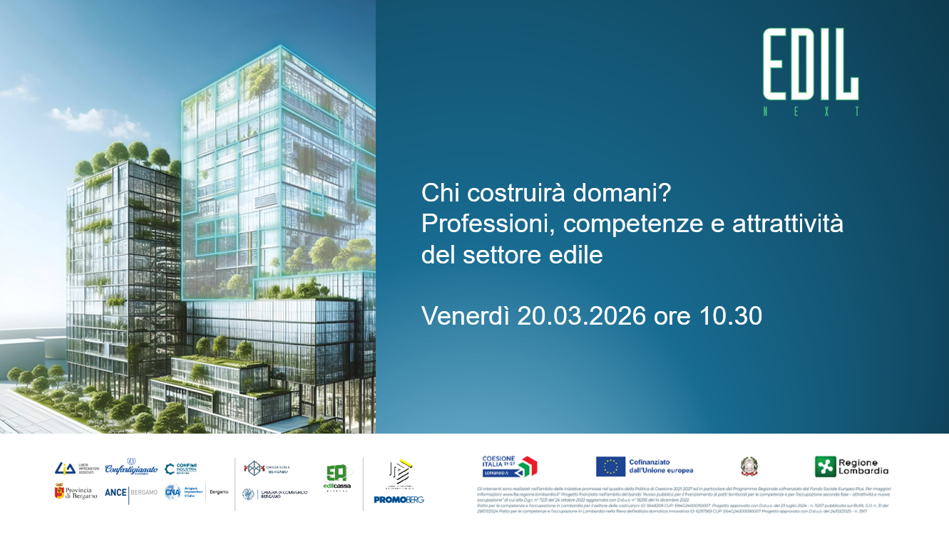 In allegato la presentazione relativa al convegno Chi costruirà domani? Professioni competenze e attrattività del settore ediletenutosi nell'ambito della fiera Edil 2026 il 20.03.2026.