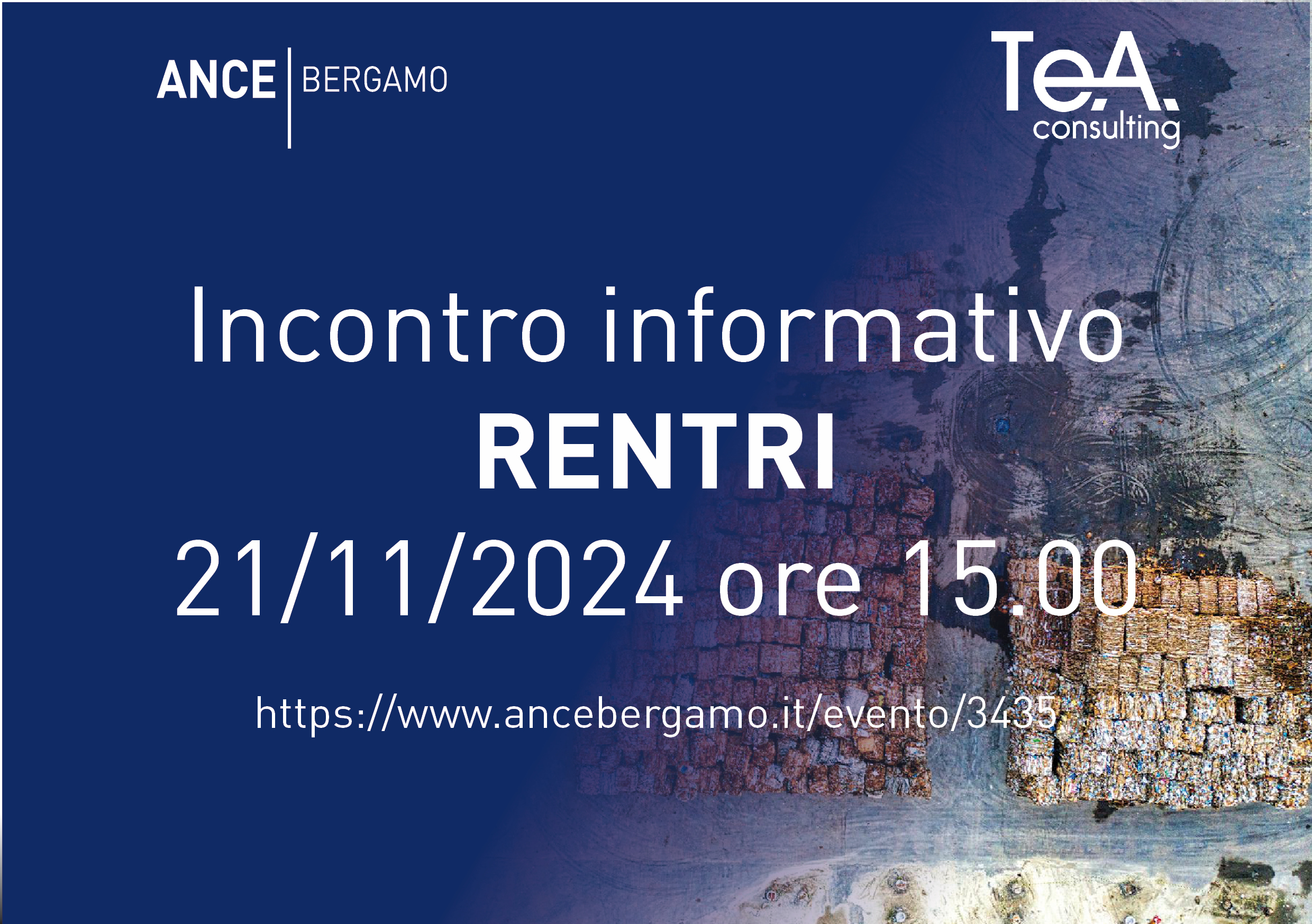 Atti dell'incontro RENTRI 22 novembre 2024 In allegato il materiale e il link alla registrazione dell'incontro informativo RENTRI tenutosi in ANCE Bergamo in data 21/11/2024. 1__Presentazione_Cefis_pdf 2__Presentazione_De_Pascale_pdf Fac_simile_iscrizione_1_pdf Fac_simile_ricevuta_2__pdf Link_alla_registrazione_RENTRI_pdf