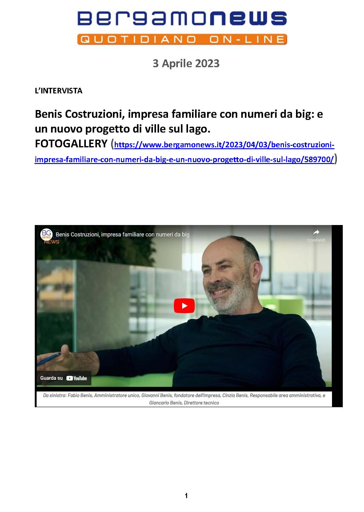 Benis Costruzioni, impresa familiare con numeri da big e un nuovo progetto di ville sul lago.