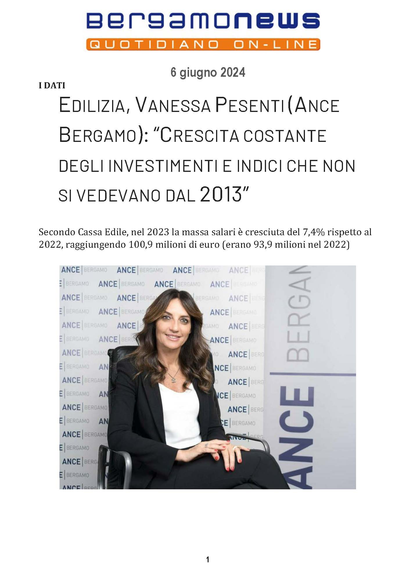 Intervento della presidente di ANCE Bergamo, ing. Vanessa Pesenti: Edilizia: "Crescita costante degli investimenti e indici che non si vedevano dal 2013"