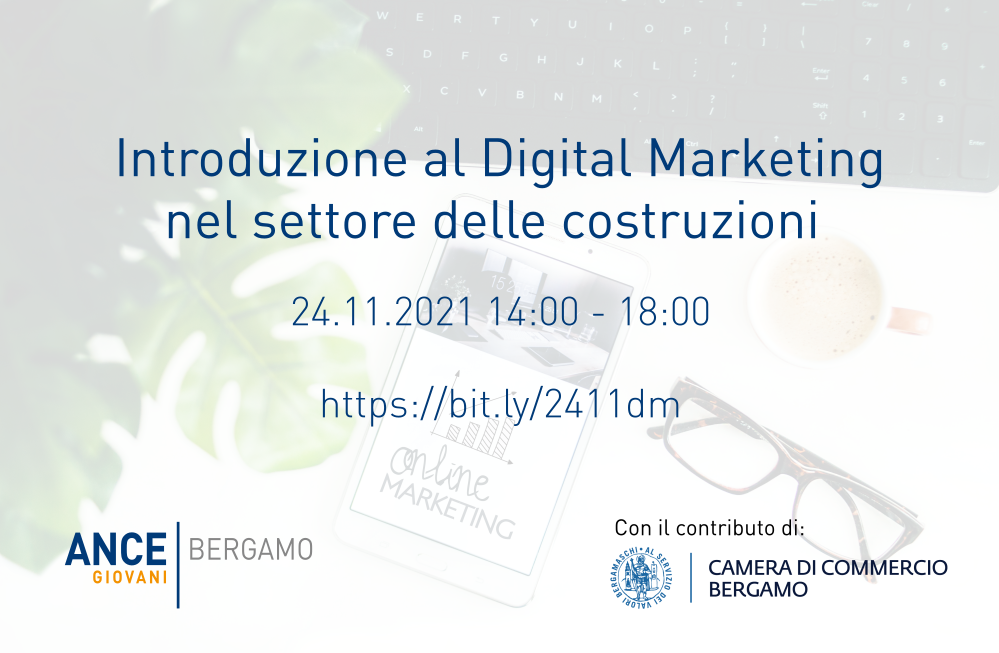 Il Gruppo Giovani di ANCE Bergamo organizza un corso di fomazione a distanza che si pone come obiettivo l'acquisizione dei concetti fondamentali di marketing digitale per gestire e promuovere online la propria impresa di costruzioni con l’obiettivo di identificare i potenziali clienti ed elaborare strategie efficaci.