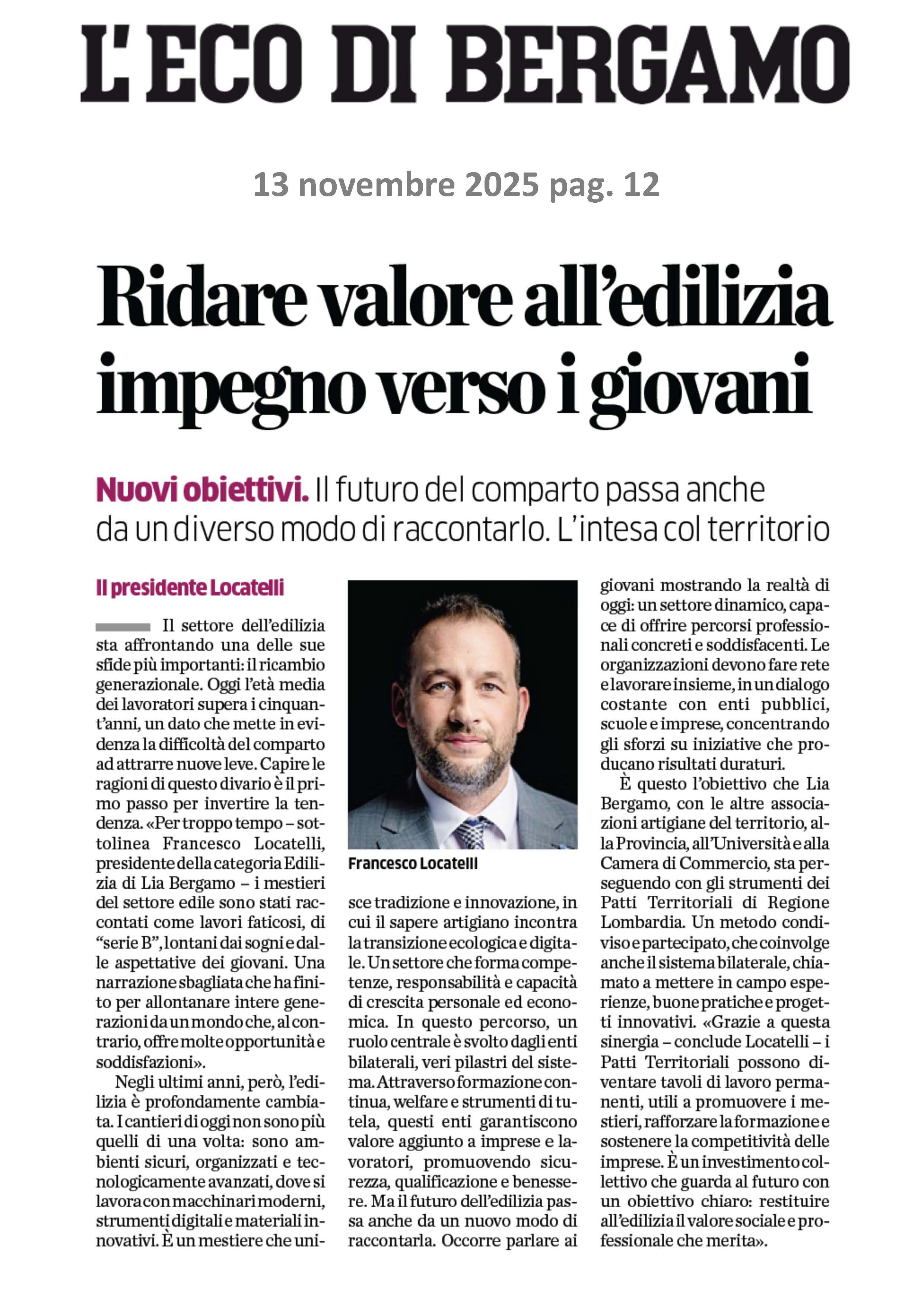 Ridare valore all’edilizia impegno verso i giovani 13 novembre 2025 L'ECO DI BERGAMONuovi obiettivi 2025-11-13-2_pdf